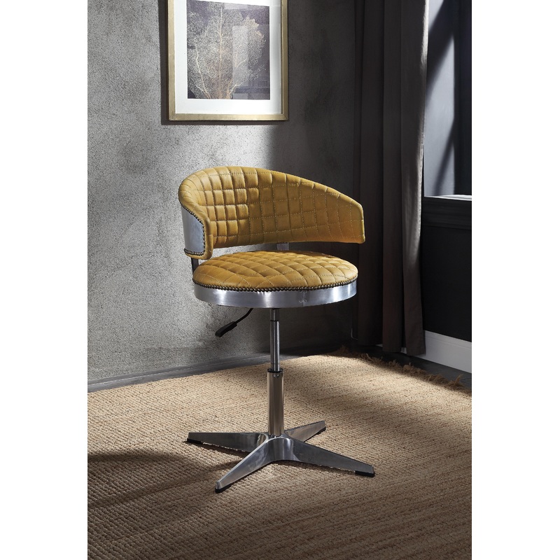 Brancaster Turmeric Top Grain Leather & Chrome Adjustable Chair w/Swivel